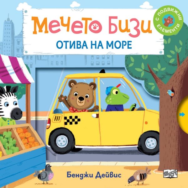 Мечето Бизи заминава на почивка. Плъзнете или дръпнете подвижните елементи, за да му помогнете да пристигне по-бързо на морето.