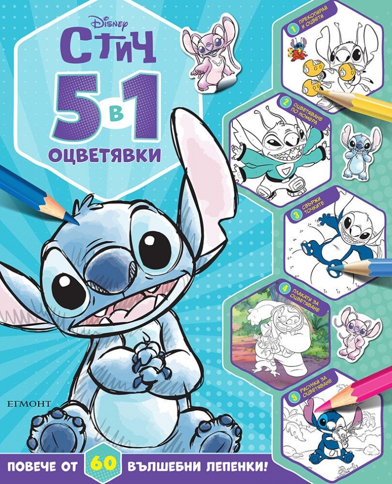 Изданието съдържа 48 страници с пет различни вида задачи за оцветяване и над 60 лепенки. Предназначено е за деца над 3-годишна възраст и е ценен помощник в насърчаване на творческото мислене, развиване на чувството за естетика и трениране на умението за концентрация.