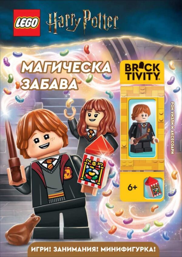 Добре дошли в необикновения свят на вещици, магьосници и магически създания! Срещнете се с Рон Уизли, млад магьосник и най-добър приятел на Хари Потър. Открийте забавни факти за Рон, преминете през лабиринт в „Хогуортс“, направете нова мантия за коледния бал и много други неща в тази вълнуваща занимателна книжка. Сглобете своя собствена минифигурка на Рон Уизли и нека магическата забава започне!